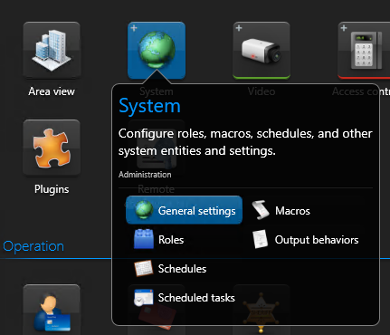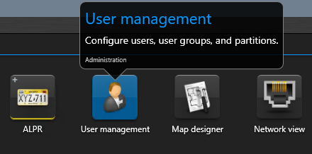 In the Genetec Security Center Config Tool, click the button in the upper left corner of the window.