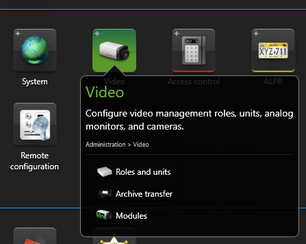 In the Administration category, select Video.