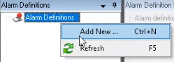 Right-click on the Alarm Definitions panel Add new.
