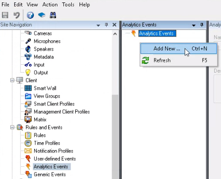 Right click on the Analytics Events panel Add new.