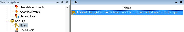 In the Milestone XProtect Management Client, go to the Site Navigation panel Security Roles.