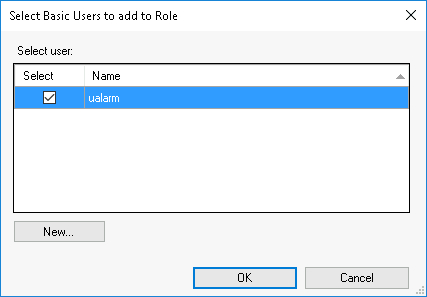 - In the Select Basic Users to add to Role pop-up, click the New button.