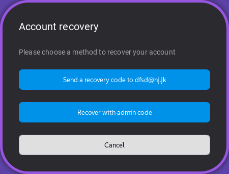 Send the recovery code to the user via e-mail.